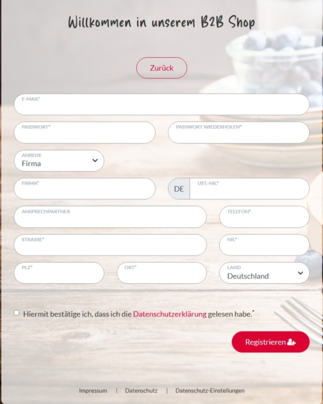 Sie haben Fragen zu unserem B2B-Shop, zur Registrierung oder allgemeine Anliegen? Schreiben Sie uns einfach über das Kontaktformular – wir melden uns schnellstmöglich bei Ihnen zurück.
